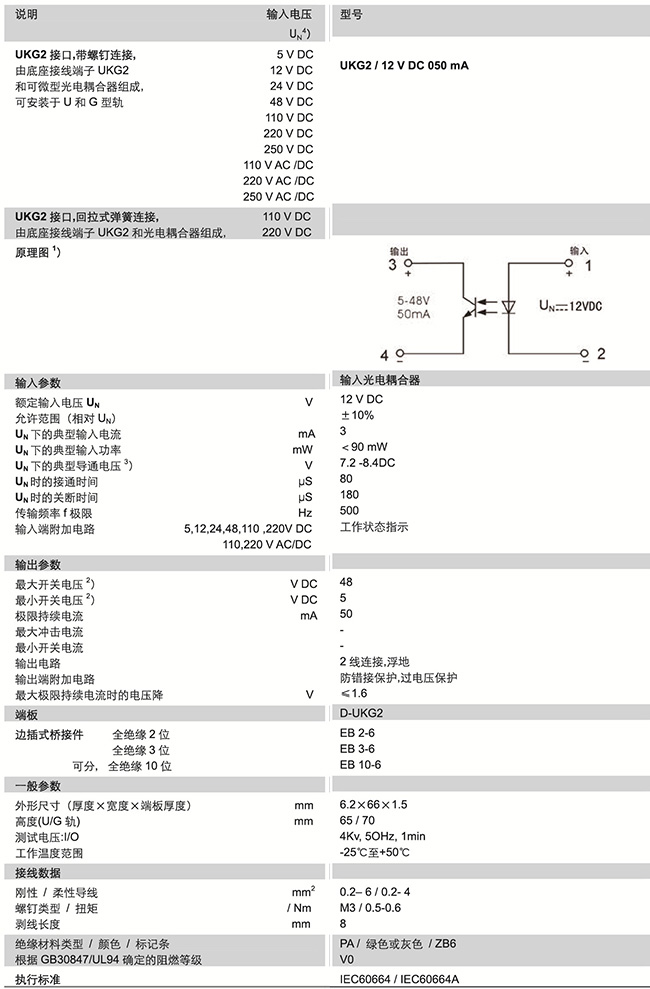 UKG2系列 帶光電耦合器-UKG2/12...VDC 050MA